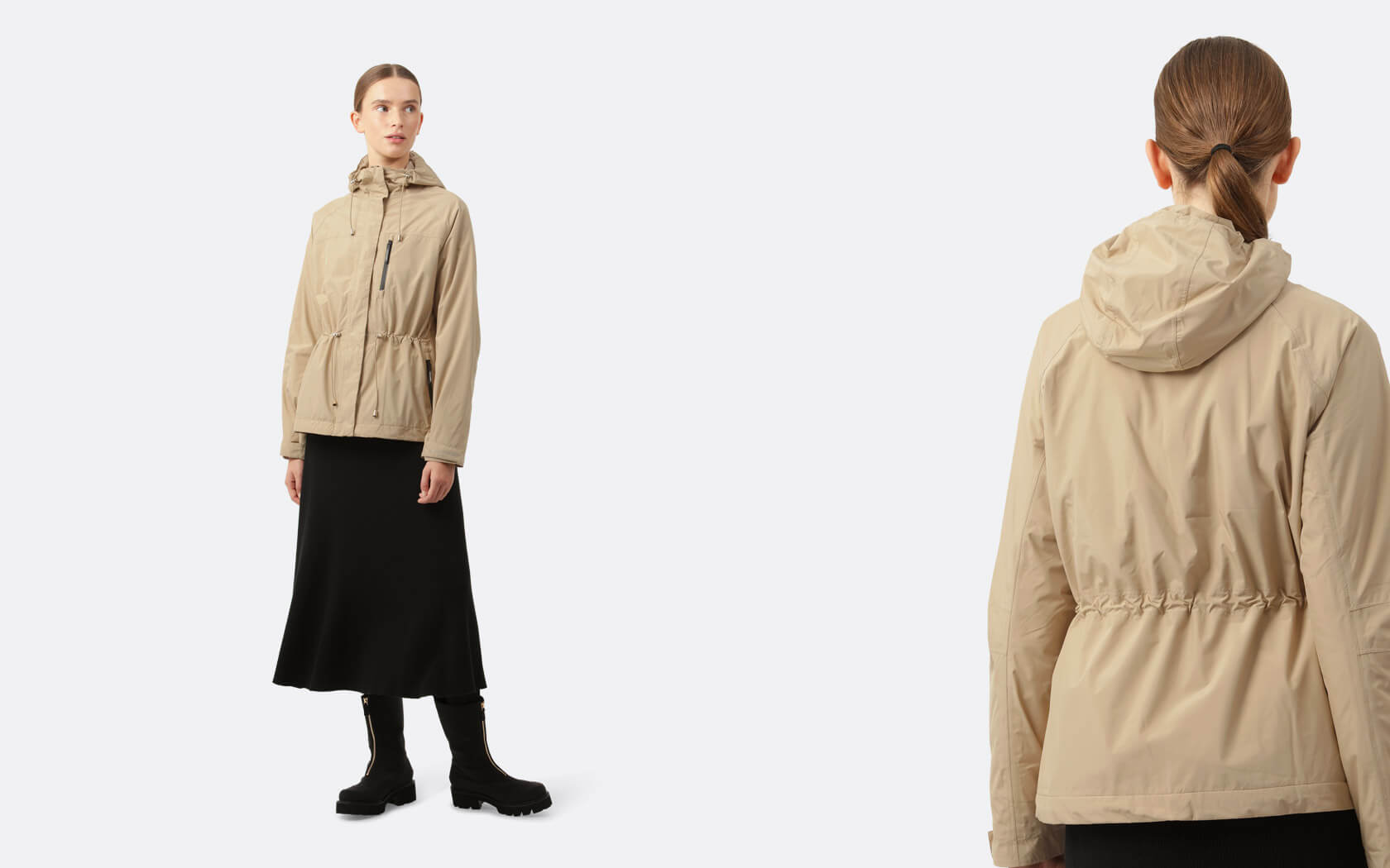 Nous contrastons cela avec le design nordique élégant où la fonctionnalité fusionne harmonieusement avec l'élégance scandinave féminine, créant une collection qui incarne à la fois la beauté sauvage du plein air et le style raffiné de l'exploration urbaine.